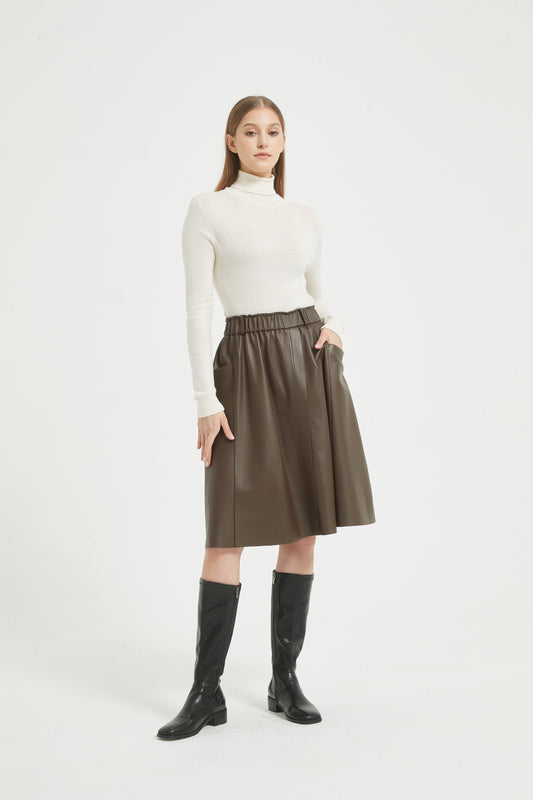 Универсальная женская облегающая повседневная юбка-зонтик из овчины Markcorp с черным кофейным цветом на осень и зиму